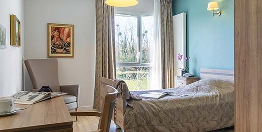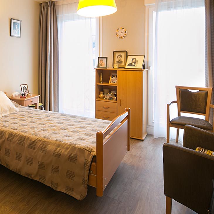 Les chambres de l’établissement sont équipées d’un grand lit médicalisé, de mobilier et d'une salle de bain privative. Pour permettre à chacun de se sentir à l’aise et comme chez lui, les résidents ont la possibilité d’apporter les effets personnels auxquels ils tiennent, dans la limite de l’espace disponible dans la chambre.
